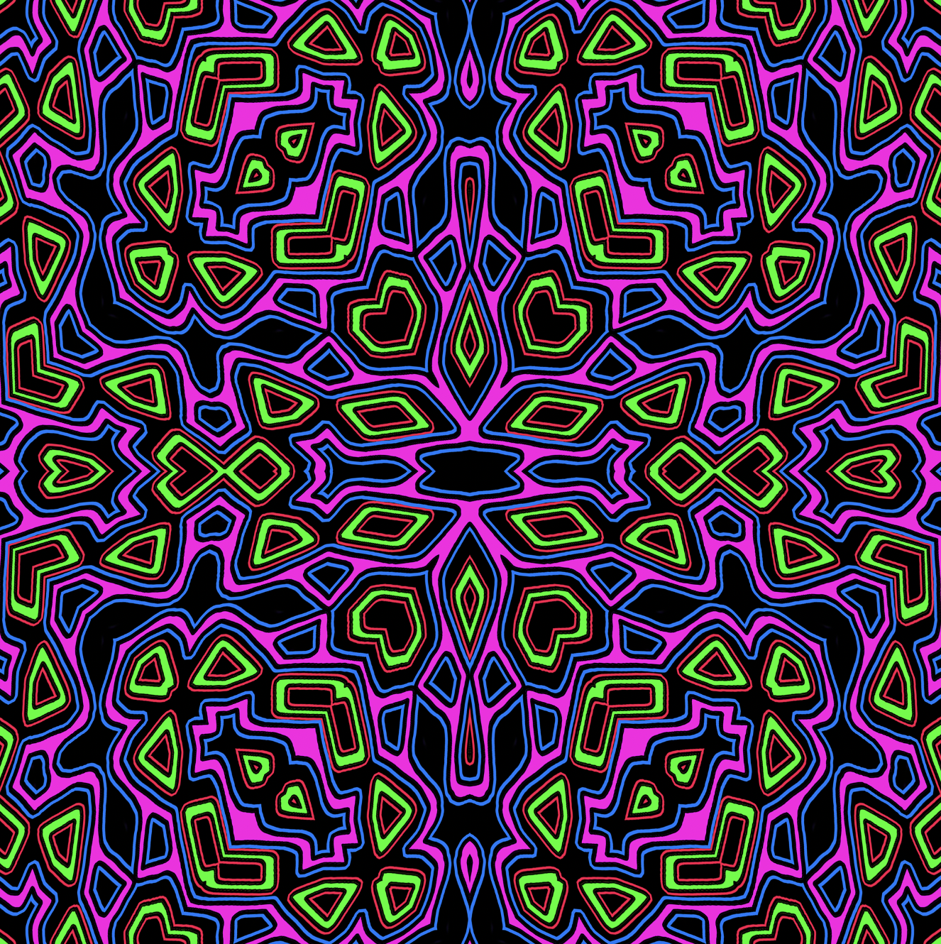 Each Psyometry Design contains a kaleidoscopic fragment of an original Shipibo Icaro embroidery, expanded into mesmerizing psychedelic mandalas, portals, and sacred geometries. These symmetrical yet unpredictable patterns invite contemplation, balancing structured harmony with the organic randomness of the visionary experience.