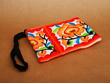 This vibrant purse is handmade in Thailand using traditional hill tribe fabrics, each one featuring detailed embroidery and bright trim. The inside is fully lined with two compartments: one open pocket and one with a zip, secured with a magnetic popper fastening. These textiles are crafted by hill tribe artisans, drawing on generations of skill and cultural symbolism. No two purses are the same. Colours, trim and stitching patterns vary, and you will receive a randomly selected design from the assortment shown. Detailed information can be found below. Dimensions: 19 x 12 x 0,5 cm. |