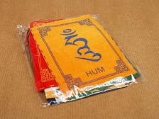 Mini set of 10 Mantra prayer flags ideal for limited space, these delightful flags have a velvety feel and are printed with the well known Buddhist mantra Om Mani Padme Hum and Tibetan Script in the colours of Five Pure Lights like traditional Lungta prayer flags. When Lungta flags are hung, the wind is thought to activate their blessings, spreading them to the surrounding area, promoting harmony, and raising the spiritual energy of both the environment and its inhabitants. Detailed information below in the description. Dimensions: 10 flags measuring 7 x 9,5 cm, total length approximately 100 cm. |