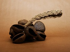 This Indonesian shaker is made from Pangium seed husks tied onto a thick natural fibre loop that fits around the wrist or ankle. It creates a deep, textured sound when moved, clapped or brushed, and is often used in traditional dance and movement practices. The seeds are a by-product of Indonesian cuisine and carry cultural value both in cooking and ceremony. Each shaker is unique, with subtle variations in sound and shape. More information can be found below. Dimensions: 22 x 11 cm. Cord length: 12 cm. |