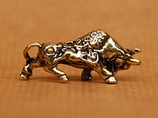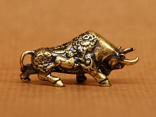 Though smaller in size, this bull carries the same steadfast energy as its larger counterpart. It is a reminder that quiet strength and persistence can be as powerful as overt displays of force, and that determination is not defined by size. Material: Brass. Dimensions: 4 x 2 cm. |