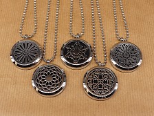 Pendants that can hold a few drops of perfume oil, aromatic oil, essentail oil or liquid resins of aromatic plants. They have a lid that opens, and inside is a cotton pad, on which perfume oils can be dropped. |