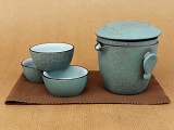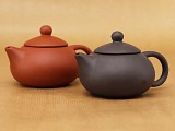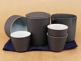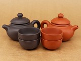 Purple clay tea sets 3 piece - black - Very small black ceramic Chinese tea set. Perfect for our extensive selection of Pu'er tea. Strong Pu'er tea is served steaming hot from very small ceramic cups. The tea is usually stewed in another pot and then served with a small ceramic teapot. Set contains 1 tea pot and 2 cups. Pot: height: 8 cm; length: 11 cm; diameter: 7,5 cm; weight: 110 gr; volume: 120 ml. Cup: height: 3 cm; diameter: 4,5 cm; weight: 28 gr; volume: 15 ml.