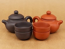 Very small ceramic Chinese tea set, available in black or red. Perfect for our extensive selection of Pu'er tea. Strong Pu'er tea is served steaming hot from very small ceramic cups. The tea is usually stewed in another pot and then served with a small ceramic teapot. Set contains 1 tea pot and 2 cups. |