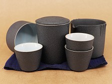 Dark grey portable ceramic Chinese tea set. Perfect for our extensive selection of Pu'er tea. Strong Pu'er tea is served steaming hot from very small ceramic cups. The tea is usually stewed in another pot and then served with a small ceramic teapot. Set contains 1 tea pot, 3 cups, a filter and case. Packed in a padded zipped case. |