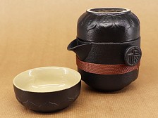 Anthracite coloured portable ceramic Chinese tea set. Perfect for our extensive selection of Pu'er tea. Strong Pu'er tea is served steaming hot from very small ceramic cups. The tea is usually stewed in another pot and then served with a small ceramic teapot. |