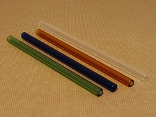 A simple pyrex glass tube, in various colours. This glass tube suits as the ultimately simple Tepi (blowpipe), or as a base to decorate one's own blowpipe. The techniques are simple and allow ones creativity freely. |