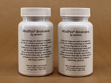 A desiccant is a hygroscopic material (it will absorb water from the air). Desiccant bags are used to completely dry the air within a package or container during shipment or storage. |