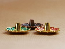 These handmade ceramic incense holders come in six bright flower designs and are painted in turquoise, blue, red, purple, yellow and beige. |