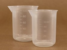 Small beaker set made from (heat resistant) polypropylene plastic. Sizes: 50 ml and 100 ml, with ml indication marks. Dimensions: 100 ml - 65 mm high, 50 mm diameter. 50 ml - 60 mm high, 45 mm diameter. |