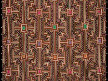 Shipipo textiles, replicas, contemporary shamanic art on canvas and stickers