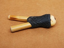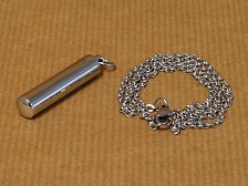 A very small snuff bottle pendant, made from steel. The bottle suits perfectly for storing a very small quantity of Rapé, and can be carried around the neck as a pendant with the included chain. This is the smallest version. Diameter: 8 mm, length 35 mm, and a steel chain is included. Capacity: A few doses of Rapé. |