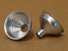 This is a very small stainless steel funnel. Diameter 37 mm. It has a wide stem (9 mm diameter) and is suitable to fill liquids, oils, and grainy and powdered substances into a small bottle or container. This is the ideal funnel to fill our small bottles without spillage. |