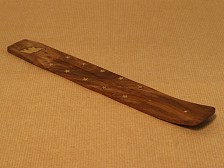 Shoe horn shaped, mango wood ash catcher, perfect for use with stick incense. This design has been inlaid with a lovely Elephant motif and stars. 26cm x 3.5cm |