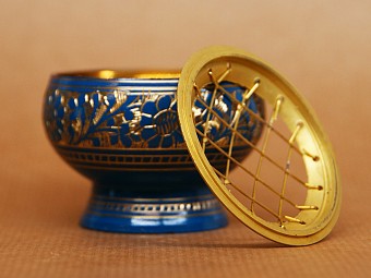 Metal Incense Charcoal Burner in Blue, Red or Green with Gold Trim
