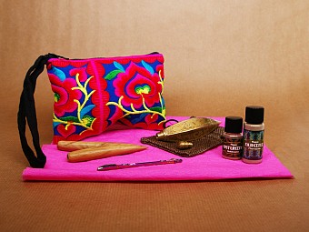 – Embroidered Thai Purse: handmade by Northern Thai artisans using vivid hill-tribe embroidery. Each purse is a unique work of art—its stitching carries meaning, protection, and story. Size: ≈ 14,5 × 10 cm. Cord: 12 cm. Colour selected at random. You can find the Thai Spiral Purse here.